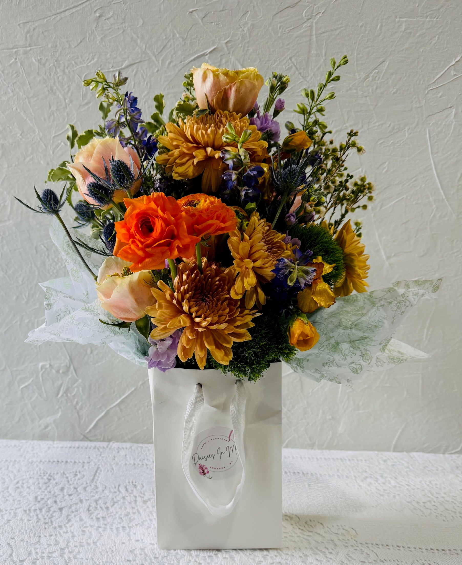Send a peaceful, heartfelt message with this elegant wrapped bouquet tote. A gentle way to express sympathy and offer comfort during difficult times.